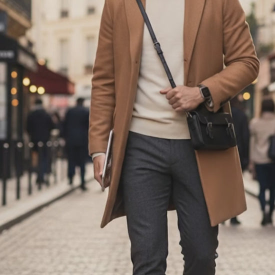 Chaque pièce révèle une texture unique, vivante, qui se bonifie à l’usage. Sa structure rigide et son design rétro fonctionnel rappellent les sacs d’artisans et d’explorateurs d’autrefois repensés pour la vie urbaine contemporaine.