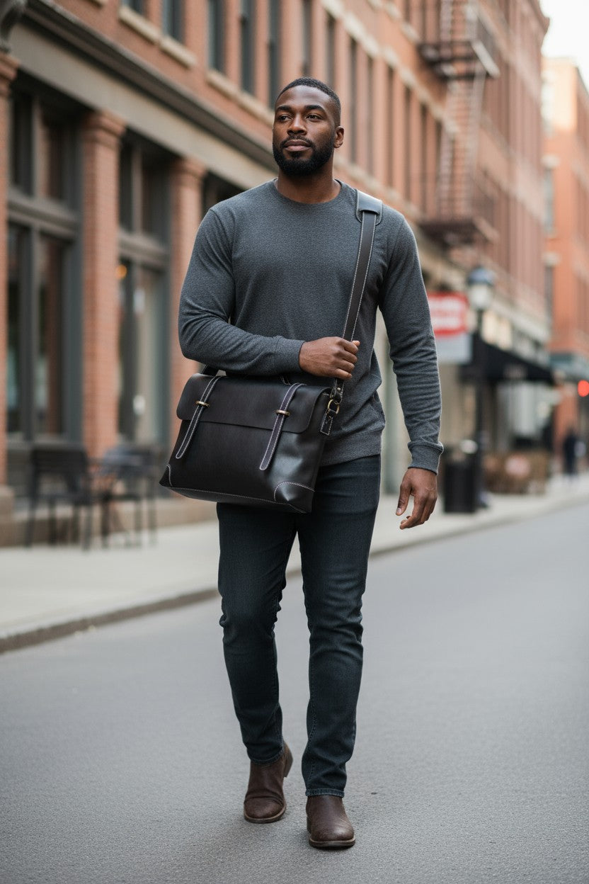 Chez Valmont, nous avons choisi l’essentiel : un cuir pleine fleur rigoureusement sélectionné, des finitions précises et un design utilitaire chic qui traverse les modes.